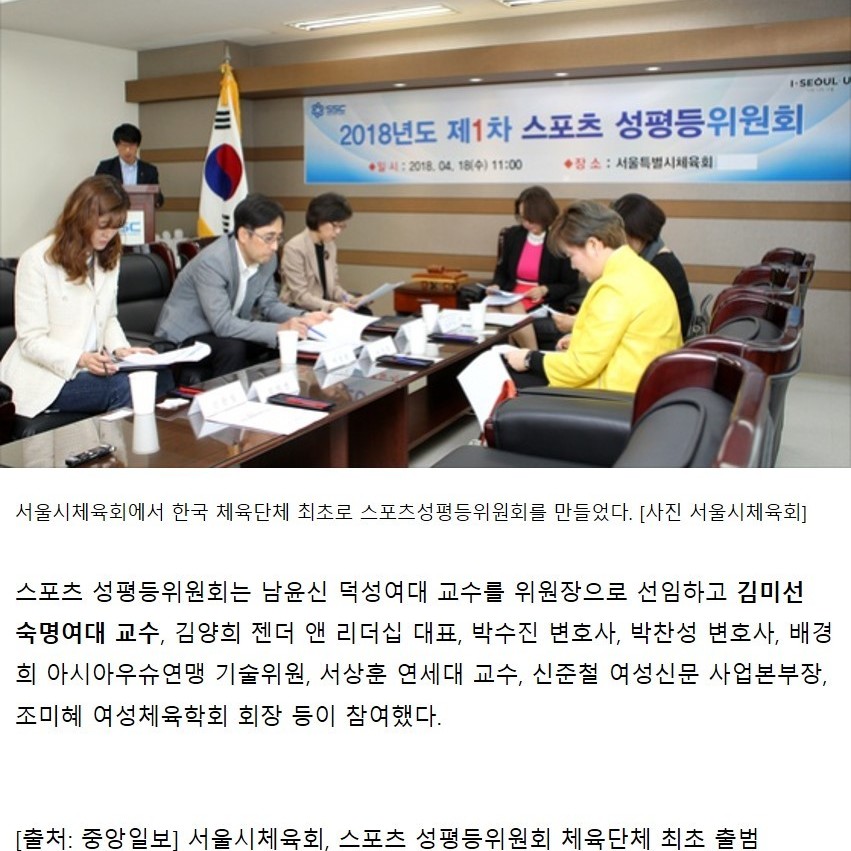 서울시체육회, 스포츠 성평등위원회 출서울시체육회는 '미투(#Me Too) 운동'을 자정의 계기로 삼고 변화의 물결에
