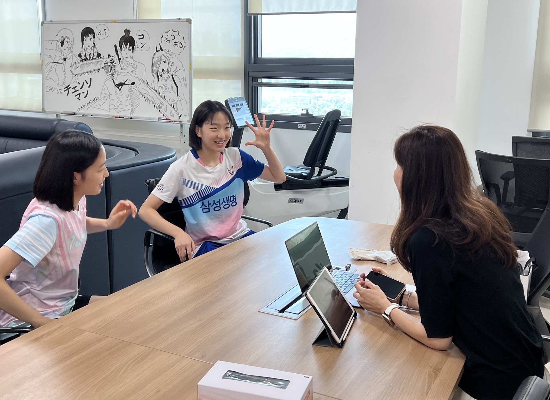 5년전 영재발굴단에서 김미선대표님과 함께 상담을 통해 만났었는데요, 이후 삼성생명에서 활동하고 있는 두 선수를 다시 만나게 되었습니다.
