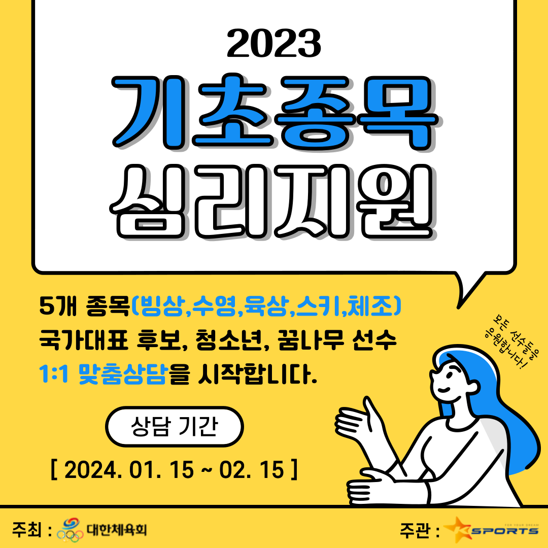 올해에도 대한체육회와 함께 2023 기초종목 심리지원을 하게 되었습니다.